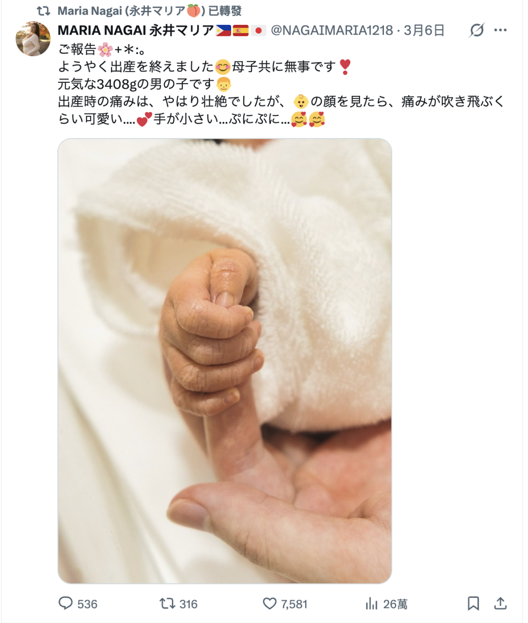 这是男人永远无法体会的感觉,在这儿先恭喜永井マリア(永井玛丽亚)了;由于自怀孕到现在她一直很认真地更新社群,我们彷彿是把一部连载小说看到了母子均安的快乐大结局ー然而人生不是到此为止,永井マリア(永井玛丽亚)接下来要面对的就是要用什么方式与孩子过下去,也有很多粉丝想知道她有没有打算继续拍片,毕竟才刚生产,如果投入拍片的话那有很大的机会变成母乳女艺人,那可是难得一见啊:
